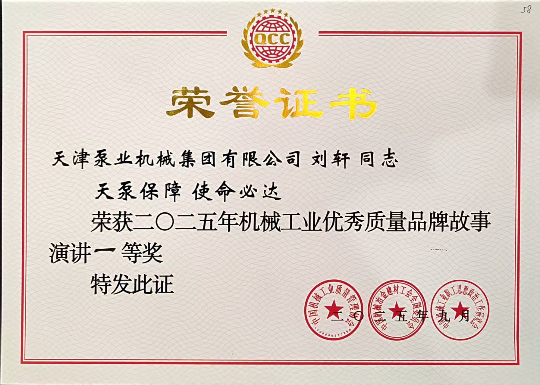 喜报|百利电气所属天津泵业斩获2025年机械工业优秀质量品牌故事演讲一等奖